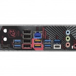 Voor randapparatuur is er USB 3.2 Gen2x2 Type‑C (20 Gb/s) op het achterpaneel, USB 3.2 Gen2 Type‑C voor het frontpaneel, tot 9× USB 3.2 Gen1 en 8× USB 2.0. Geïntegreerde Realtek 2.5G LAN zorgt voor snelle netwerkprestaties, de Realtek ALC897 audiocodec met Nahimic Audio levert helder 7.1‑kanaals geluid. Voor geïntegreerde graphics is er een HDMI‑uitgang en een M.2 Key‑E slot voor een Wi‑Fi‑module.