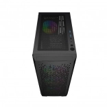 De Fornax 400X is een elegante miditower die focust op strak design en efficiënte luchtstroom. Het geperforeerde frontpaneel met stoffilter en de vooraf geïnstalleerde ARGB-ventilatoren zorgen voor uitstekende koeling en aantrekkelijke lichteffecten die je eenvoudig afstemt op de rest van je componenten.