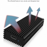 ICY BOX externe behuizing is perfect ontworpen voor krachtige NVMe M.2 SSD's, met een hogesnelheids USB 3.1 (Gen 2) Type-C verbinding die gegevensoverdracht met snelheden tot 10 Gbit/s mogelijk maakt. De stevige aluminium constructie zorgt voor duurzaamheid en efficiënte warmteafvoer.