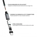 De duurzame nylon vlecht beschermt de kabel tegen knikken en slijtage, en de lengte van 2 meter biedt gemak thuis, op kantoor en in de auto. Compatibiliteit met Quick Charge 4.0/3.0/2.0 en AiPower‑technologie zorgt voor breed inzetbare compatibiliteit met USB‑C‑apparaten.