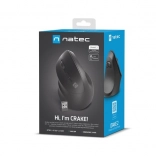 Verticale draadloze muis NATEC Crake 2 voor linkshandigen, Bluetooth 5.2 + 2,4 GHz, 2400 DPI, zwart