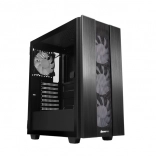 Het zijpaneel van gehard glas op scharnieren biedt comfortabele toegang tot de componenten en benadrukt het strakke, elegante design van de behuizing.