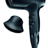 Compacte haardroger met een vermogen van 1800 watt biedt drie temperatuurstanden en twee luchtstroomstanden, wat zorgt voor ideale omstandigheden voor het stylen van je haar.