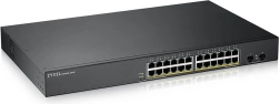 De intelligente switch Zyxel GS1900 24HPV2 is de ideale oplossing voor eenvoudige configuratie en beheer van MKB-netwerkomgevingen. Hij kenmerkt zich door een bijna stille werking dankzij slimme ventilatoren die de snelheid automatisch aanpassen aan de apparaattemperatuur. Perfect voor uw kantoor.