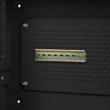 De verpakking bevat een DIN-rail voor montage van apparatuur en accessoires, ankerbouten en aardingskabels voor stabiliteit en veiligheid.