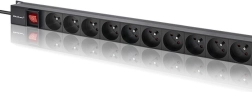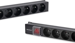 De keuze van de juiste PDU-strip moet functionaliteit, materiaalkwaliteit en aangeboden functies omvatten, zoals een verlichte schakelaar voor eenvoudige lokalisatie van de voeding. Deze strip is ideaal voor 19" rackkasten, biedt 16 stopcontacten van het type FRENCH en heeft een constructie van hoogwaardig aluminium in zwart, terwijl de contactdozen van duurzaam ABS-kunststof zijn. Deze constructie zorgt voor bestendigheid tegen mechanische schade en intensief gebruik. Speciale beugels aan beide zijden maken eenvoudige montage mogelijk. De stopcontacten zijn onder een hoek van 35 graden gerangschikt, wat het kabelmanagement vergemakkelijkt en het ruimtegebruik in de serverkast optimaliseert.