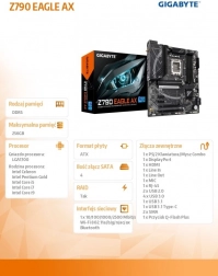 Krachtig moederbord GIGABYTE Z790 EAGLE AX voor Intel Core processoren van de 12e/13e/14e generatie biedt stabiele voeding met een 12+1+1-fasen digitaal VRM, sneld werkend DDR5-geheugen (XMP 3.0), drie M.2 PCIe 4.0-sleuven, moderne connectiviteit met 2.5GbE LAN en Wi‑Fi 6E, plus praktische functies zoals EZ-Latch en Q-Flash Plus.