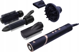 Vijf afneembare opzetstukken dekken drogen, gladmaken en het creëren van krullen en volume: diffuser, concentrator, platte, roterende en ronde borstel.