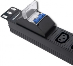 De stekkerdoos beschikt over 8 aansluitingen van het type IEC 320 C13 en een overspanningsautomaat voor de veiligheid van aangesloten apparaten.