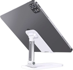 De universele bureaustandaard AWEI X11 in het wit biedt een stabiele en verstelbare oplossing voor smartphones en tablets thuis en op kantoor. Dankzij de hoogteverstelling van 11–15 cm, de mogelijkheid tot hoekverstelling en de antislip siliconen bescherming zorgt hij voor comfortabel video’s kijken, lezen en videobellen. Het opvouwbare ontwerp maakt meenemen en opbergen eenvoudig.