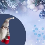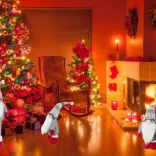 Een aangename stof, een donzige baard en een fijn patroon op de muts creëren een warme feestelijke sfeer in Scandinavische stijl.