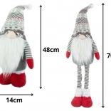 Creëer thuis een betoverend winters tafereel met een kabouter die meegroeit met je decor. Dankzij de telescopische benen stel je de hoogte eenvoudig in van 50 tot 70 cm, zodat hij perfect past op een plank, dressoir, vensterbank of onder de kerstboom. De zachte textiele afwerking, de lange witte baard en de grijs gemotifeerde muts geven je interieur een Scandinavische charme.