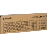 Volwaardig mechanisch toetsenbord DEFENDER MIRAX met klikbare OUTEMU Blue-schakelaars biedt een uitgesproken tactiele feedback, precieze bediening en instelbare RGB-verlichting. Biedt Anti-Ghosting voor alle toetsen, blokkering van de Win-toets tijdens het gamen en een duurzame, vochtafwende constructie. In de doos vind je trekkers voor keycaps en schakelaars voor eenvoudig onderhoud.