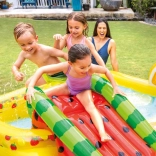 Opblaasbaar kinder water speelcentrum Fruit biedt waterplezier voor uw kleintjes met een kleurrijk design van watermeloen, sinaasappel en citroen. Ontworpen voor veilig en vrolijk spelen in de tuin.