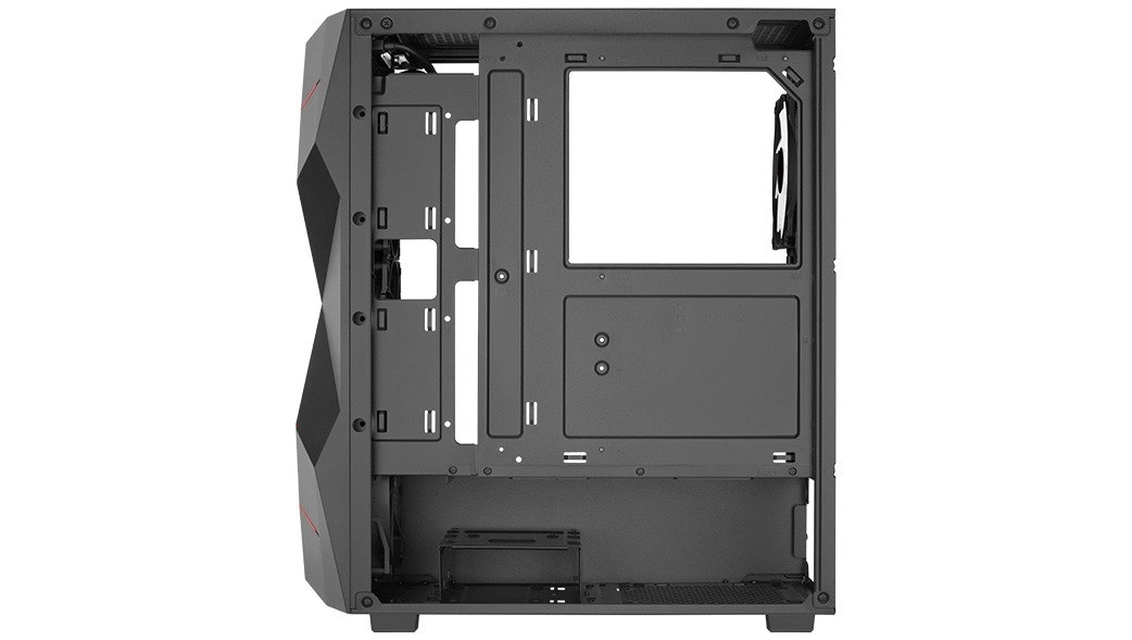Volcan biedt een opvallend afgeschuind frontpaneel met RGB‑verlichting en een ademend hexagonaal rooster voor uitstekende airflow. Het zijpaneel van gehard glas laat je componenten én gesynchroniseerde verlichting schitteren. Dankzij het doordachte interieur met 24,5 mm kabelruimte en een PSU‑shroud bouw je een strakke, overzichtelijke setup zonder compromissen.