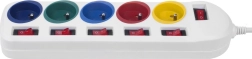 Praktische stekkerdoos met 5 stopcontacten en individuele schakelaars voor elk stopcontact. Voorzien van kinderbeveiliging, een verlichte hoofdschakelaar en comfortabele bediening van aangesloten apparaten thuis, in de werkplaats en op kantoor.