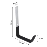 Praktische en duurzame haken voor overzichtelijke opslag van fietsen, banden, ladders, slangen en gereedschap in de garage of thuis. Stalen constructie met gerubberd oppervlak beschermt tegen krassen en zorgt voor zekere grip. Eenvoudige montage, ruimtebesparend en universeel inzetbaar in één set van 2 stuks.