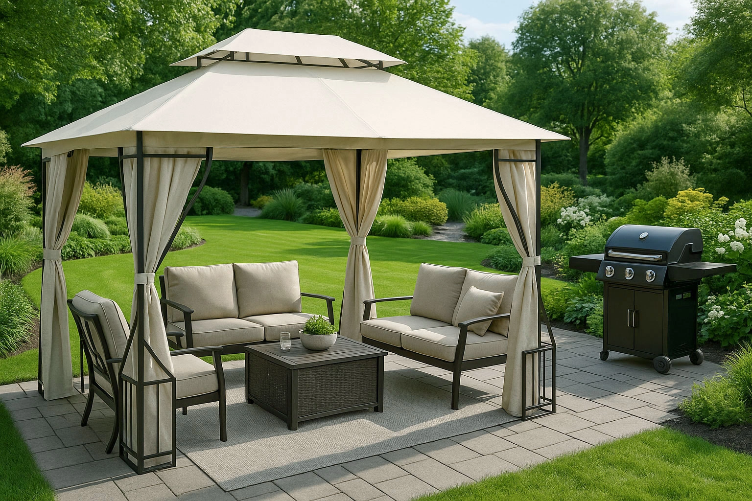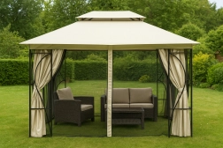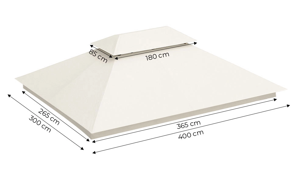 Het vervangende dak voor je tuinpaviljoen van 3x4 m biedt uitstekende bescherming dankzij waterbestendige en UV-bestendige polyestervstof 180 g/m². Perfect voor tuinevenementen, barbecues of ontspannen middagen, en verlengt je tuinseizoen van lente tot en met herfst!