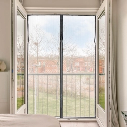 Het magnetische insectengaas van 110 × 220 cm zorgt voor een rustige, insectvrije woning. Het fijne maar sterke polyesternet beperkt licht of uitzicht niet en vormt tegelijk een effectieve barrière tegen insecten. Geïntegreerde magneten over de centrale naad klikken na het passeren vanzelf dicht, zodat de deur steeds comfortabel gesloten blijft.