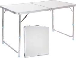 De opvouwbare campingtafel is snel uit te klappen en vormt na het inklappen een compact koffertje met een comfortabel handvat, wat eenvoudige opslag en transport mogelijk maakt. Het grote blad met afmetingen van 120 x 60 cm biedt voldoende ruimte voor eten, drinken of spellen. De in hoogte verstelbare poten zorgen voor aanpassing aan verschillende omstandigheden en voorkeuren van gebruikers.