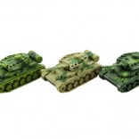 Realistische kunststof tank van 11 cm met vliegwielaandrijving die alle kleine soldaten zal blij maken. Verkrijgbaar in 3 kleuropties en de verpakking bevat 10 stuks in een doos. De duurzame uitvoering is ideaal voor actiespellen en het stimuleren van de fantasie. Geschikt voor kinderen vanaf 3 jaar.