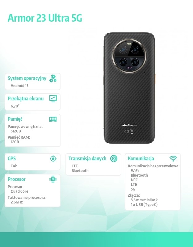 De ULEFONE Armor 23 Ultra 5G is een betrouwbare outdoor‑telefoon die hoge prestaties, een duurzame behuizing en een geavanceerd camerasysteem combineert in een elegant zwarte afwerking. Ontworpen voor gebruikers die een telefoon willen die werk, entertainment en avontuur zonder compromissen aankan.