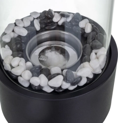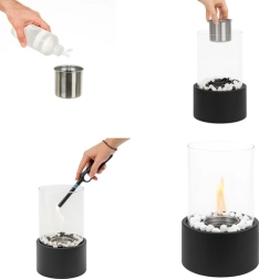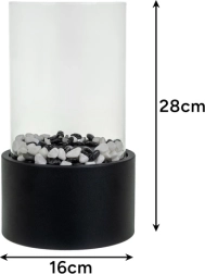 • Veilige werking: glazen wanden beschermen de vlam tegen aanraking en tocht