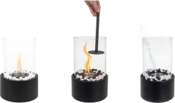 De stalen tank met absorberende keramische vezel verlengt de brandduur en vergemakkelijkt de bediening. Inbegrepen is een dover/sluiter (vlamdover) voor comfortabel doven. Eenvoudige montage en schuimrubberen pads tegen krassen op meubels maken deze biohaard tot een praktische oplossing voor dagelijks gebruik.