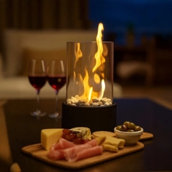 Stijlvolle vrijstaande biohaard op bio-ethanol voor appartement, huis en terras. Biedt schone verbranding zonder rook en geur, veilige vlam beschermd door glas en prettige warmte met sfeer voor ontspannen avonden.