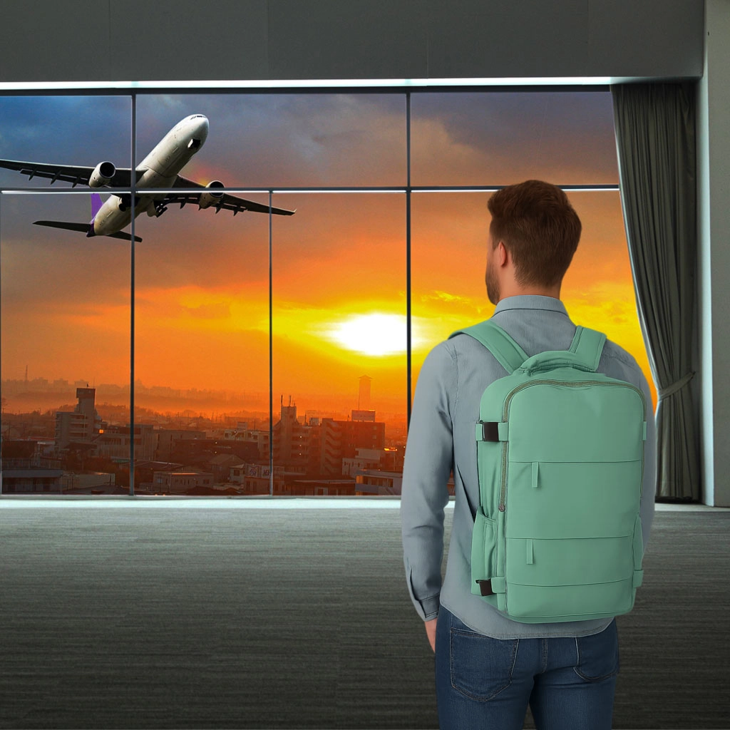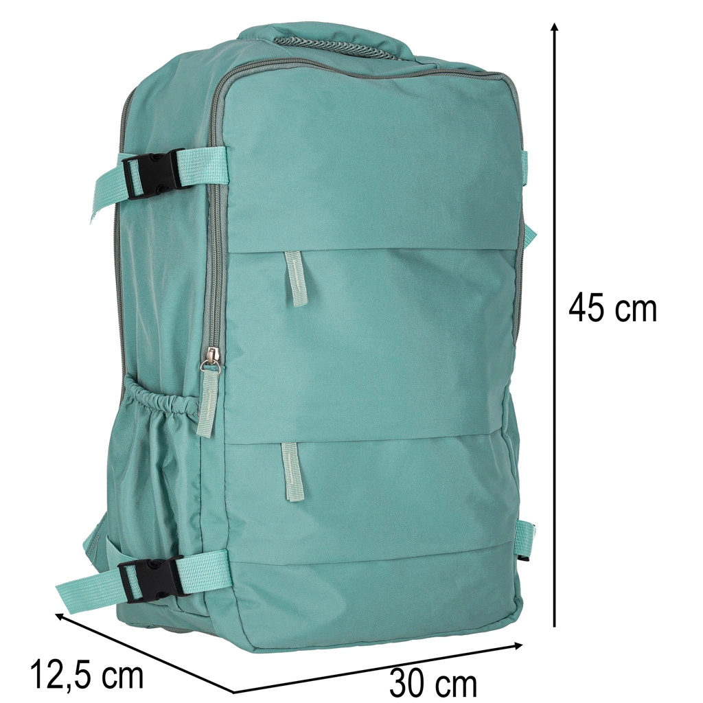 Praktische reisrugzak met afmetingen 45 × 30 cm met drie aparte compartimenten, vier buitenvakken en zijhouders voor flessen. Dankzij de compressieriemen, comfortabel gevoerde schouderbanden met mesh en het duurzame Oxford 420D-materiaal is hij ideaal voor uitstapjes, in de stad en als handbagage in het vliegtuig.