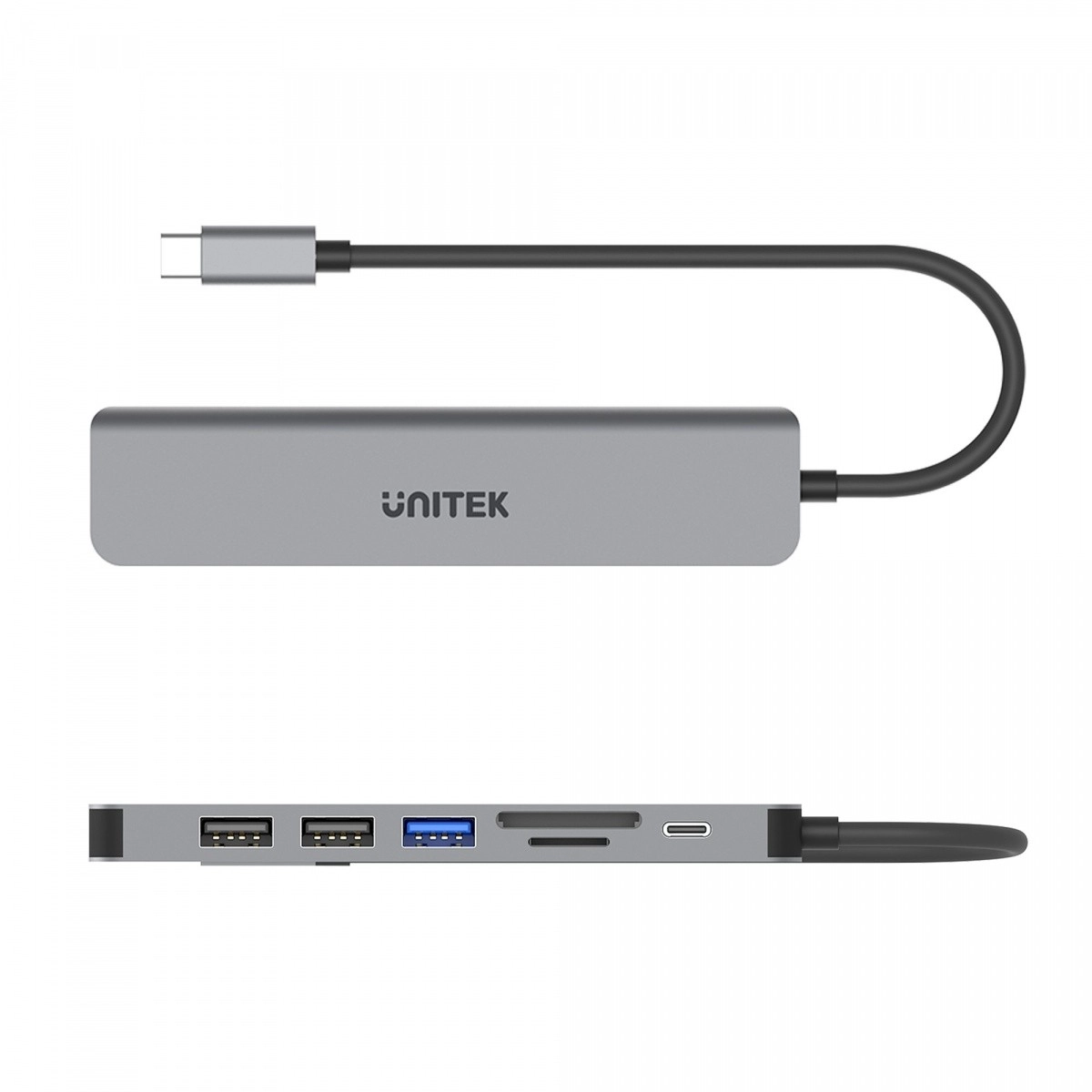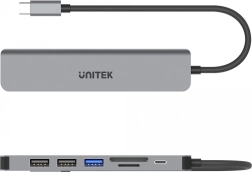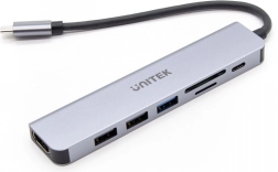 Breid de mogelijkheden van je USB‑C‑apparaat uit met de universele 7‑in‑1 hub. Sluit gelijktijdig een toetsenbord, muis, externe schijf, een kaart uit je camera en een 4K‑monitor aan – allemaal via één poort. Dankzij de doorvoer Power Delivery 100 W kun je zonder compromis werken en je laptop tegelijk opladen.