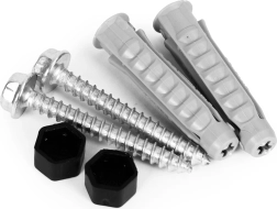 - wandmontage, montageset in de verpakking (schroeven, pluggen, afdekdopjes)
