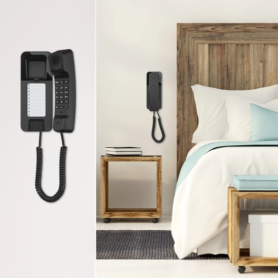 De slanke behuizing bespaart ruimte en maakt snelle wandmontage of comfortabel gebruik op een bureau mogelijk. Ideaal voor gangen, recepties en naast het bed.