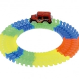 Geniet van geweldige races met de lichtgevende, flexibele racebaan die je eenvoudig naar eigen fantasie opbouwt. De onderdelen klikken moeiteloos in elkaar en je kunt de baan op elk moment aanpassen – rechte stukken, bochten en zelfs lussen zijn dankzij de buigzame segmenten geen probleem.
