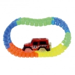 Bouw je eigen lichtgevende racebaan en stuur het snelle autootje de baan op! De flexibele stukken kun je eenvoudig in allerlei vormen buigen; de baan telt 57 delen en is 72 cm lang, en het autootje met 3 knipperende lampjes rijdt op 1× AA-batterij (niet inbegrepen). Ideaal voor kinderen vanaf 3 jaar – plezier, creativiteit en ontwikkeling van de fijne motoriek.