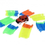 De neonsegmenten van de baan lichten prachtig op in het donker en dankzij de flexibele constructie kun je ze naar wens buigen en tot nieuwe routes samenklikken. De baan aanpassen is zo gebeurd.