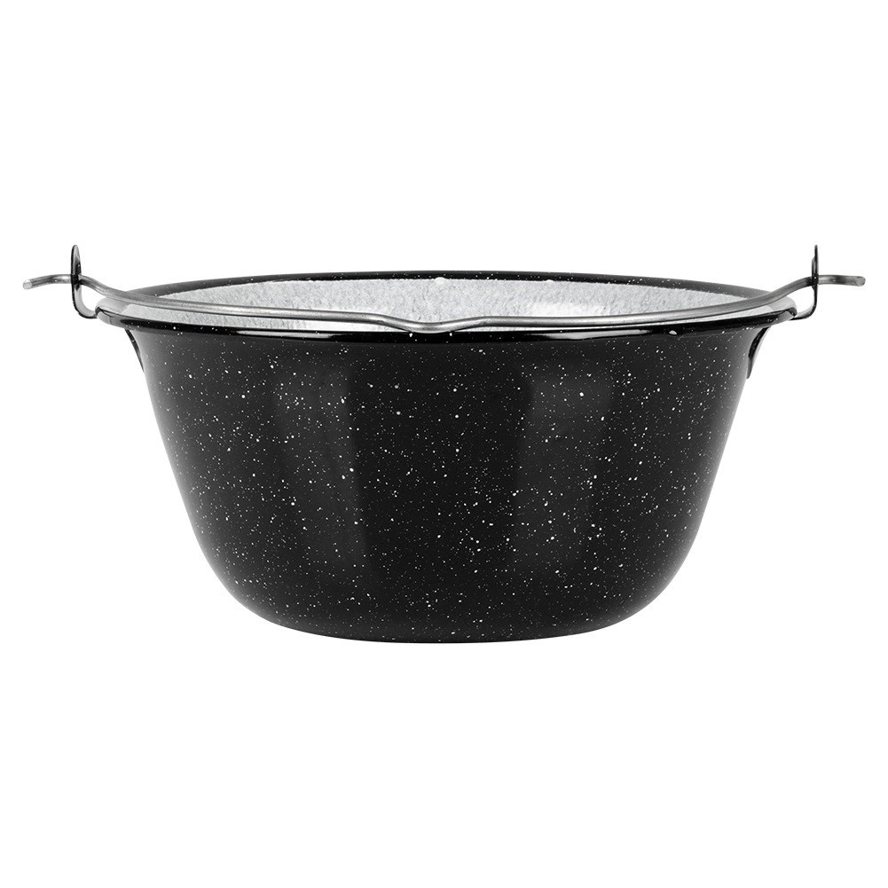 De praktische ophangbeugel zorgt voor veilig ophangen aan een driepoot en comfortabel dragen. De ketel is een geweldige metgezel voor tuinfeesten, kamperen en weekendkoken bij het vuur. Kleine productie-oneffenheden in de emaille (opbouw, ongelijkmatige print) zijn normaal en hebben geen invloed op de kwaliteit of functionaliteit – ze benadrukken de traditionele afwerking.