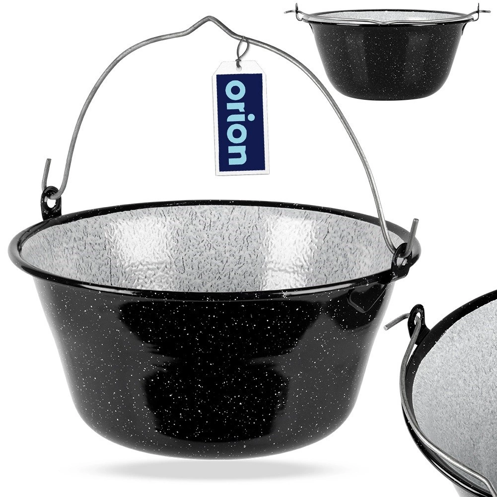 Robuuste hangketel met een inhoud van 7,5 l van hoogwaardige geëmailleerde staal, ideaal voor koken boven open vuur, in de tuin, bij de grill en tijdens het kamperen. Dankzij de brede rand en de stevige ophangbeugel is hij eenvoudig op te hangen en te dragen, en gerechten krijgen een onmiskenbare smaak en aroma.
