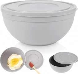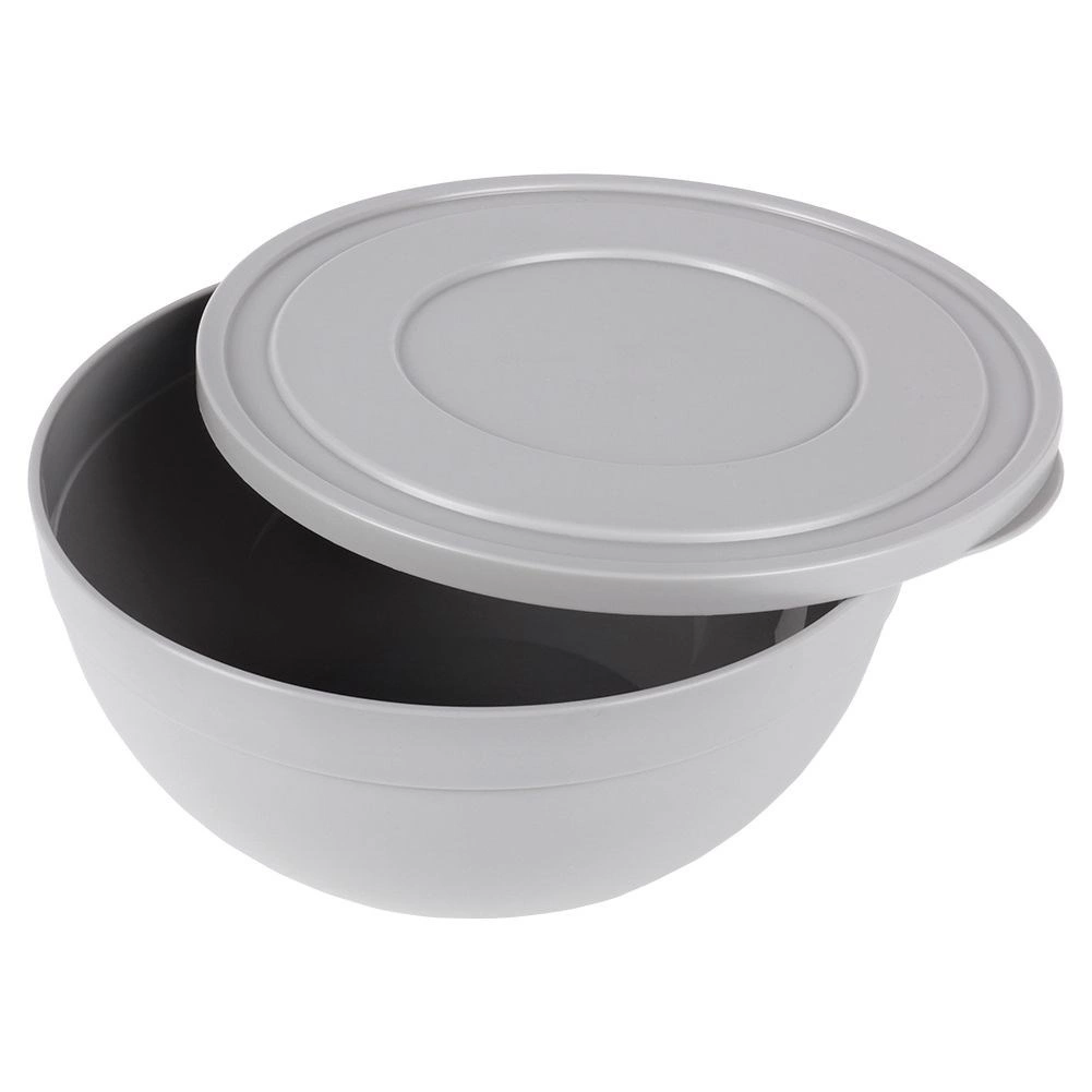 Dankzij de inhoud van 4 liter en de diameter van 25 cm bereid je moeiteloos deeg, crèmes en grotere porties salades. Het afdichtende deksel maakt veilige opslag en marineren in de koelkast mogelijk zonder ongewenste geuren. De kom is duurzaam, licht en geschikt voor de vaatwasser, magnetron en vriezer.