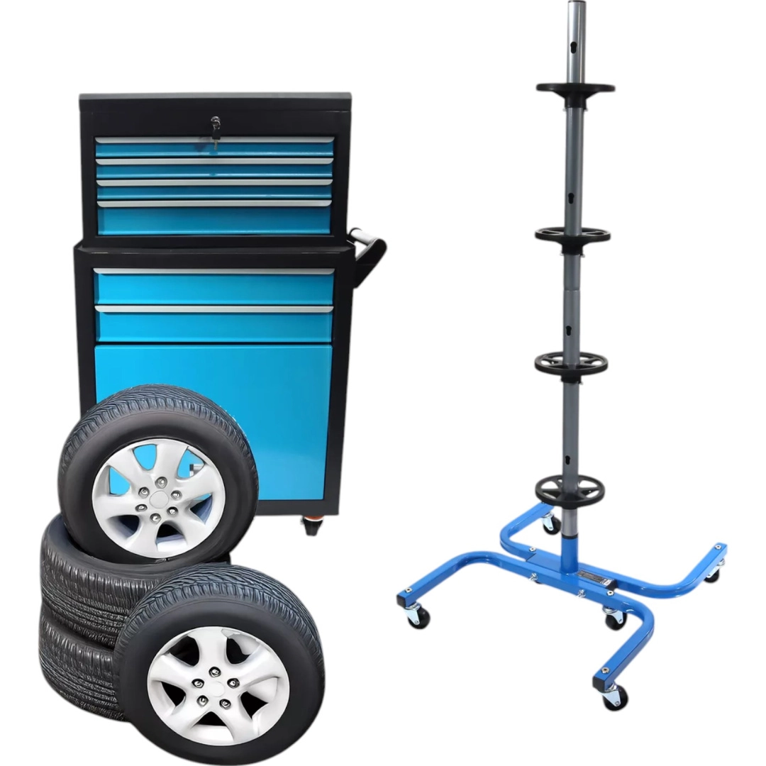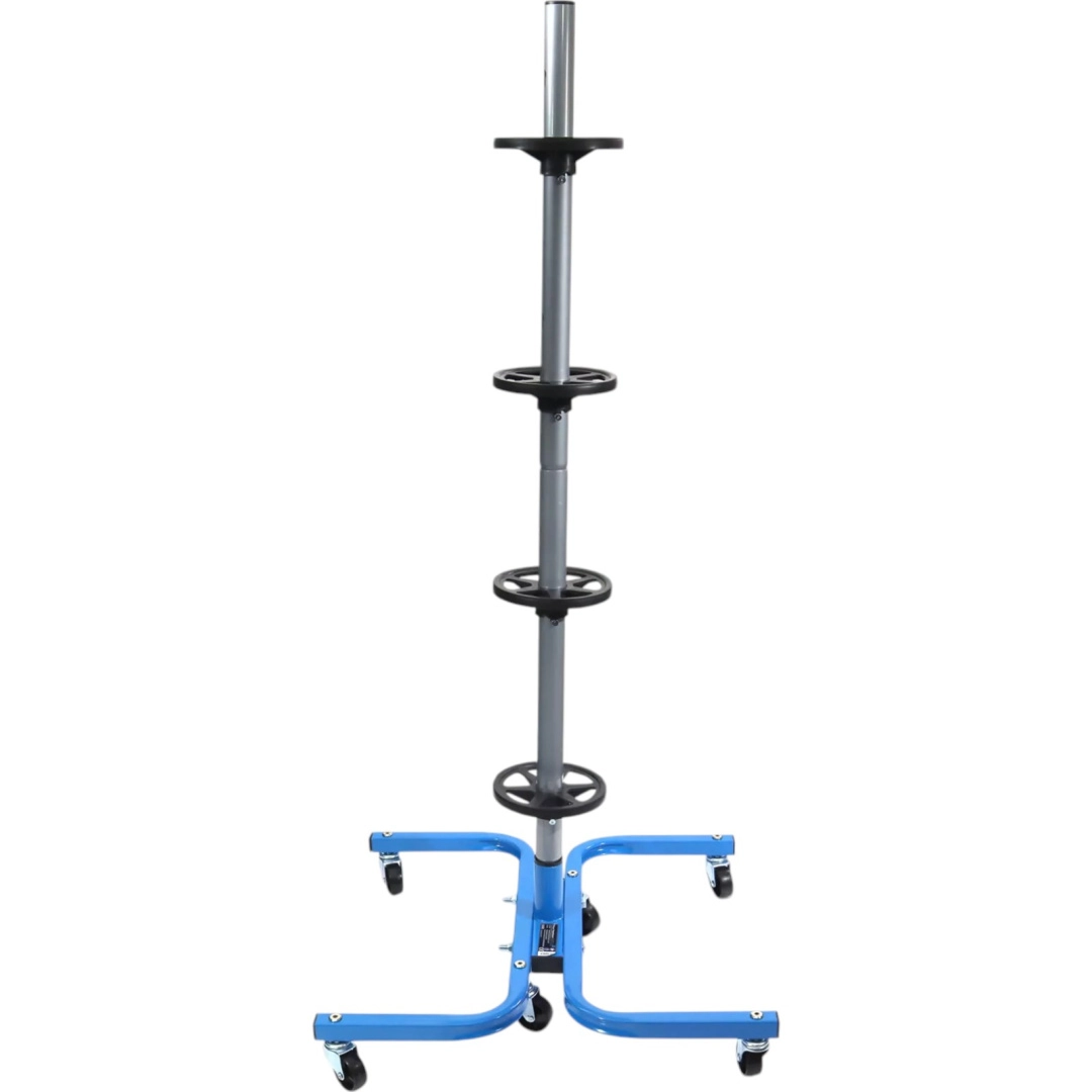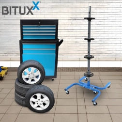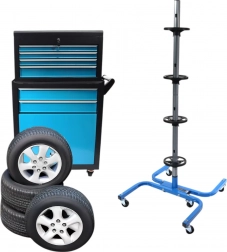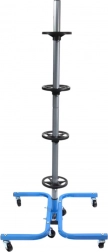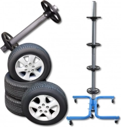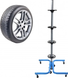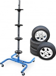 Een praktische en stabiele standaard voor vier wielen zorgt voor een veilige en overzichtelijke opslag van banden thuis en in de werkplaats. De stalen constructie met een draagvermogen van 150 kg houdt ook zware wielensets, scheidingsringen voorkomen vervorming van de banden en wielen maken eenvoudig verplaatsen door de garage mogelijk. Geschikt voor bandbreedtes tot 245 mm.