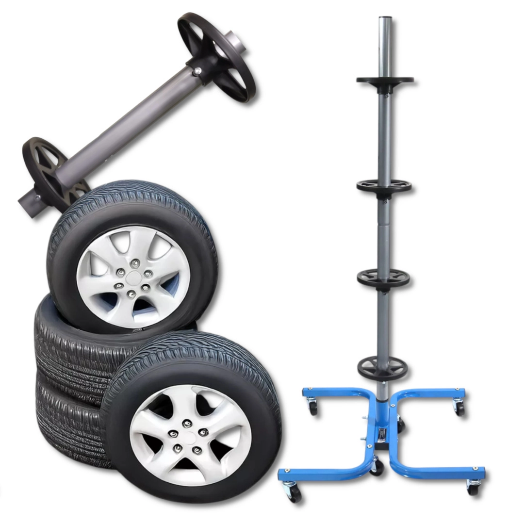 Berg zomer- en wintersets slim en ruimtebesparend op. De mobiele standaard met stevige stalen constructie en scheidingsringen houdt de banden in de juiste positie, waardoor het risico op drukplekken en vervorming wordt geminimaliseerd. Dankzij de compacte afmetingen past hij ook in kleinere ruimtes en hebt u de wielen altijd binnen handbereik.