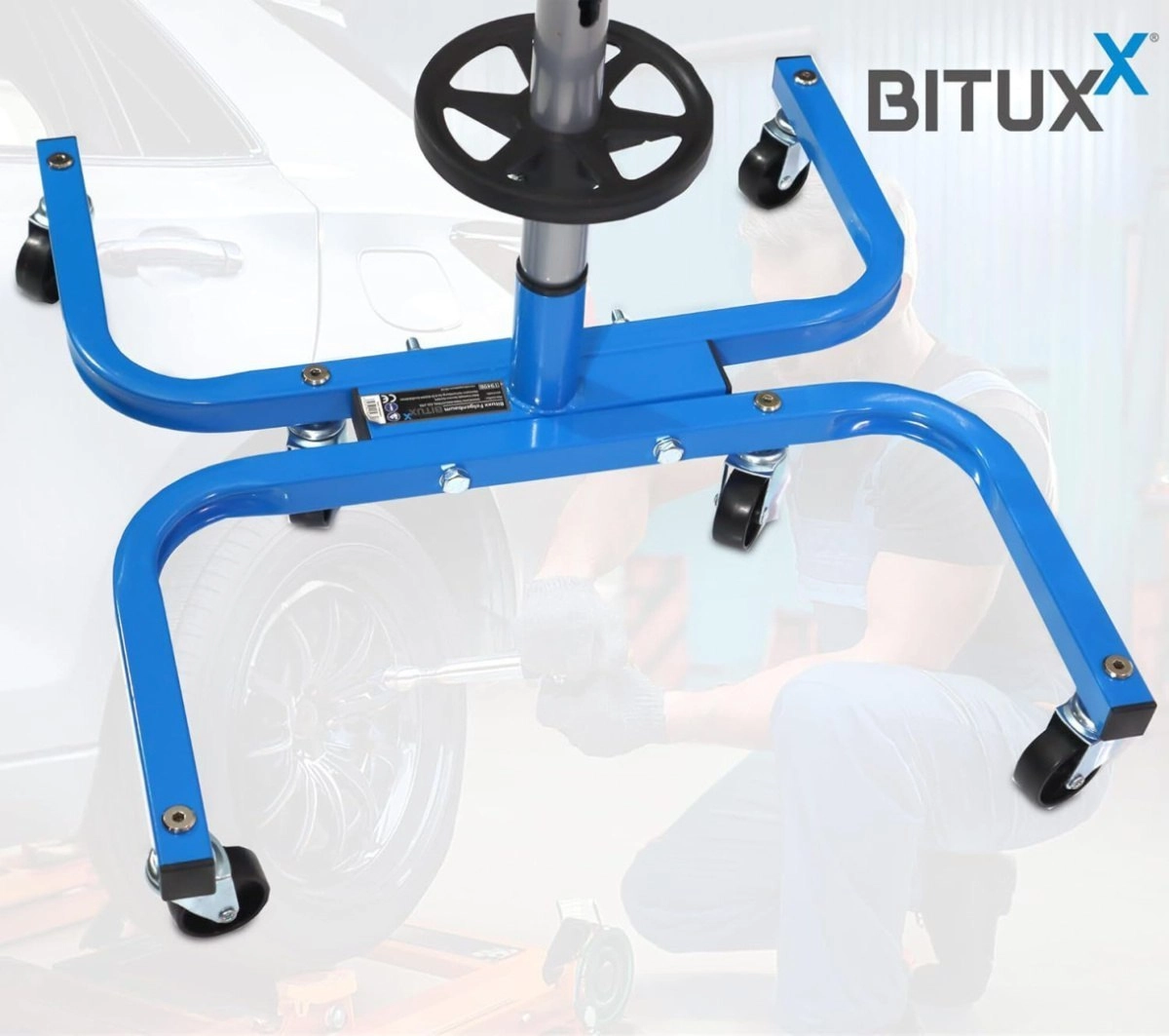 Moeiteloze mobiliteit: zwenkwielen en een laag gewicht maken snel en veilig verplaatsen van de standaard in garage of werkplaats mogelijk. Universele compatibiliteit tot een breedte van 245 mm dekt de meeste gangbare maten van personenauto’s.