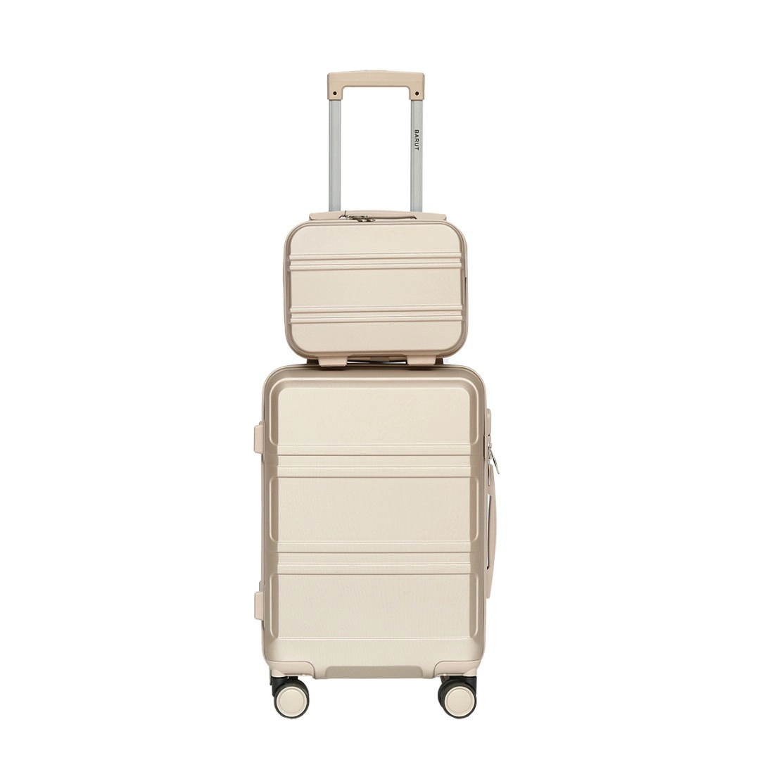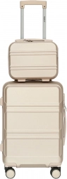 Deze elegante reisset in de kleur champagne is ideaal voor weekendtrips en zakenreizen. Het harde ABS oppervlak beschermt de inhoud tegen schokken en krassen, terwijl de lichte constructie met telescopische trekstang en 4 dubbele 360° wielen zorgt voor een soepele en stille rit.