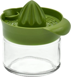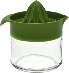 Praktische handmatige citruspers met een glazen kan van 300 ml voor het eenvoudig persen van citroenen, sinaasappels of limoenen. Dankzij de stevige glazen kan, de praktische schenktuit en de zijgreep voor comfortabel schenken maak je verse sap in een oogwenk. Vaatwasmachinebestendig en ideaal voor homemade limonades en dagelijks gebruik.