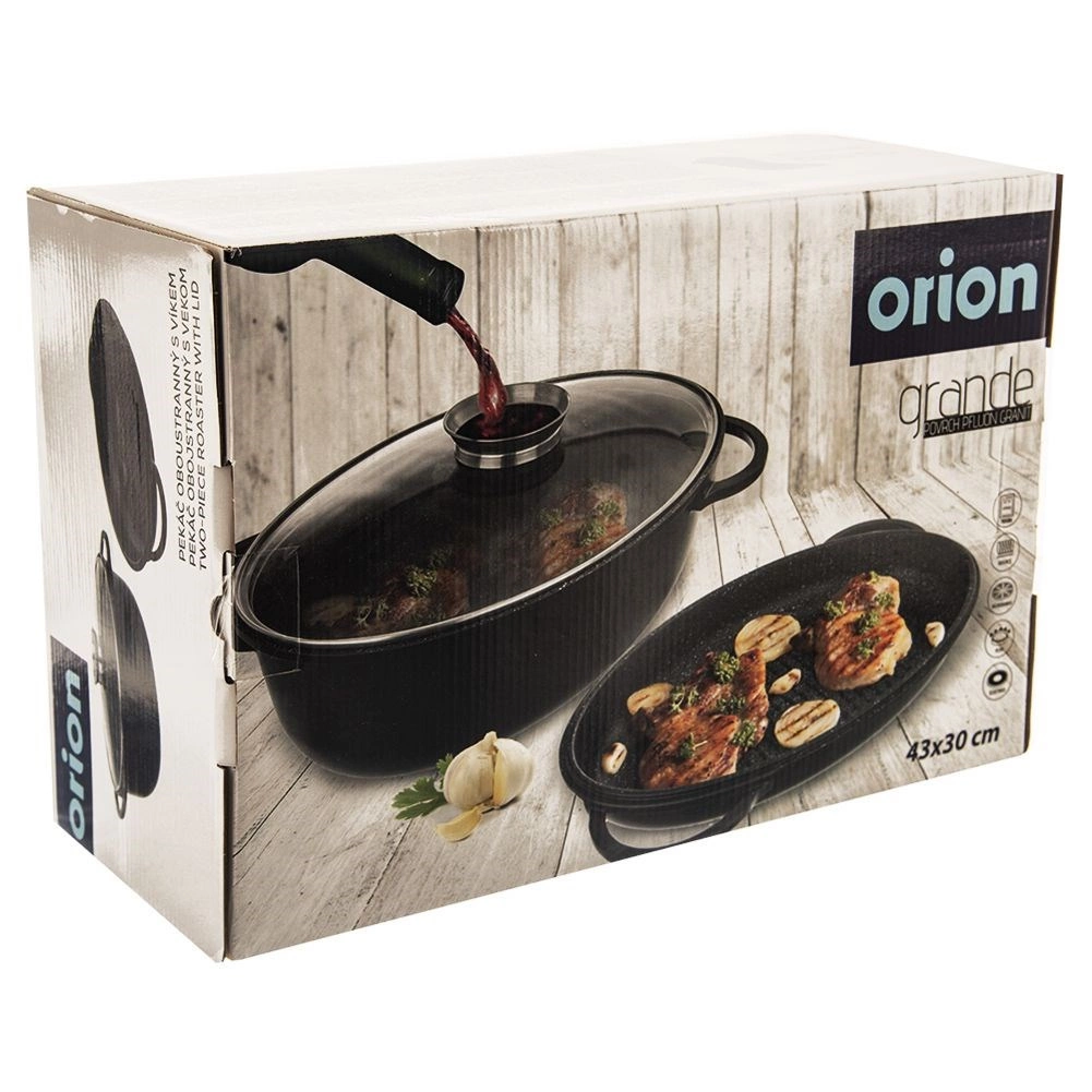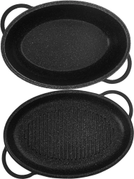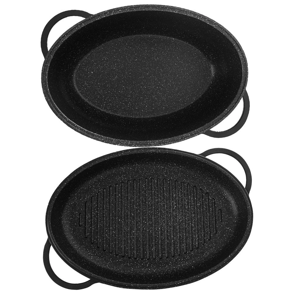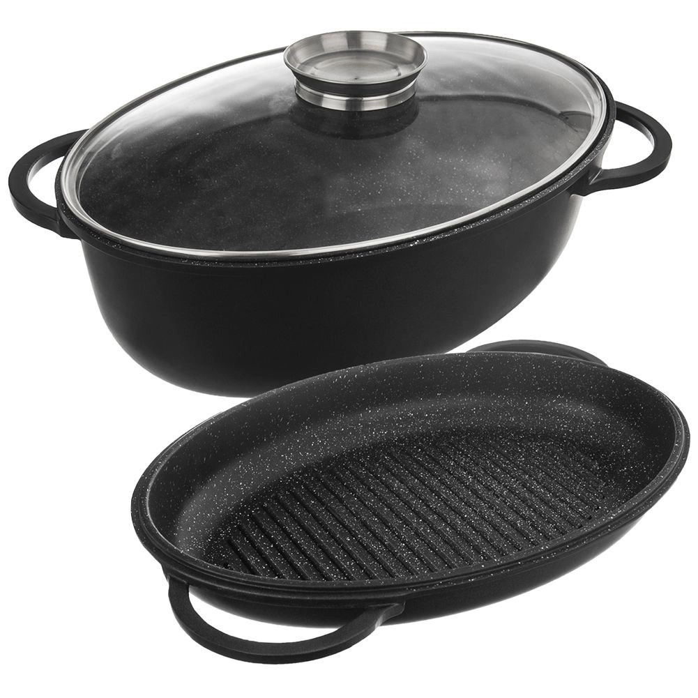 Granieten ovale braadsledeset 3-in-1 met grilldeksel en glazen deksel, 10 l, 43 × 28 cm
