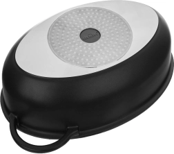 Universele ovale braadsledeset 3-in-1 voor bakken, stoven en grillen. Robuust gegoten aluminium met dubbele antiaanbak granietcoating PFLUON GRANIT maakt koken met minimaal vet mogelijk. Glazen deksel met vloeistofdoseerder voor gemakkelijk bedruipen zonder het deksel op te tillen. Geschikt voor inductie, gas, elektrisch, keramisch en voor in de oven. Eenvoudig reinigen in de vaatwasser.