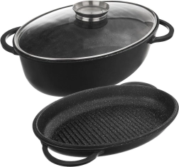 Ovale braadsledeset 3-in-1 (diepe braadslede, grillpan/deksel, glazen deksel)