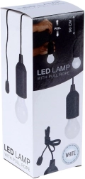 De bediening is intuïtief: trek aan het koord en de lamp gaat aan of uit. Het lange ophangkoord maakt het makkelijk om haar aan een haak, balk of tak te hangen. Het lage gewicht en de compacte afmetingen maken dit een ideale aanvullende lichtbron én een decoratief accent.