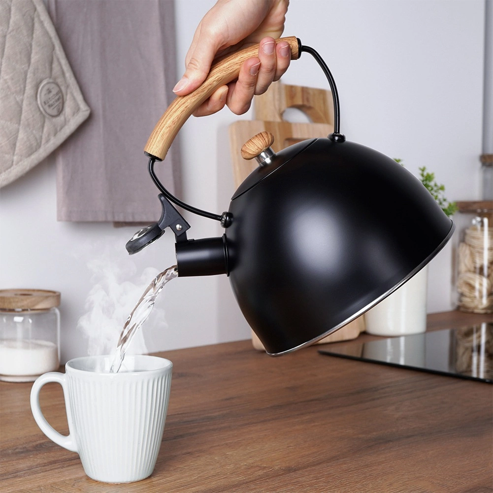 Deze stijlvolle roestvrijstalen ketel is ideaal voor het dagelijks zetten van koffie, thee en kruidentrekkingen. De matte zwarte uitvoering met houtlook op de handgreep past perfect in zowel moderne als klassieke keukens. Dankzij de doordachte constructie met akuthermische bodem warmt het water snel op, zelfs bij lagere vermogens, wat tijd en energie bespaart.