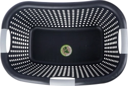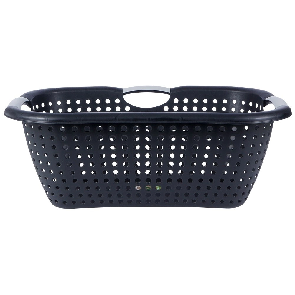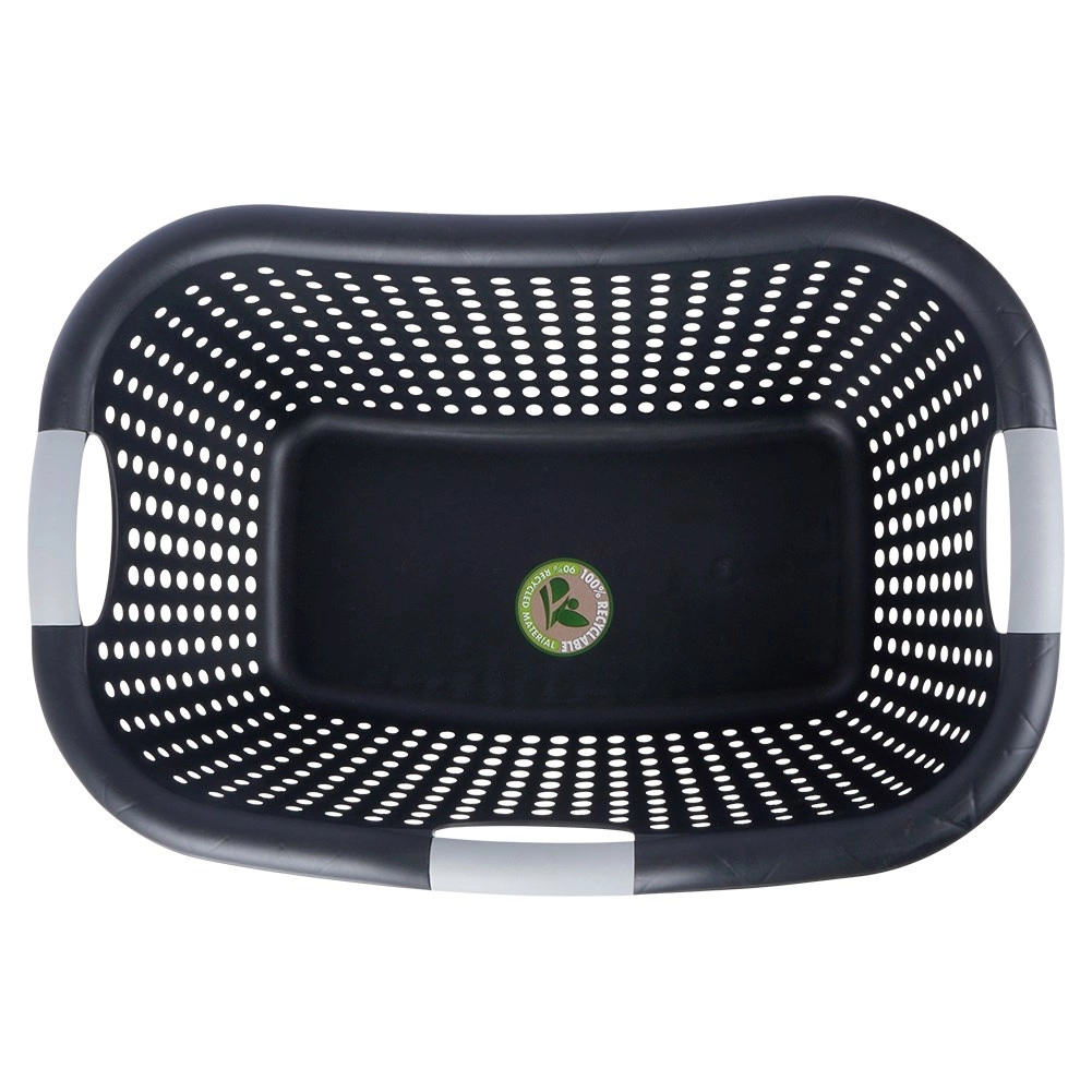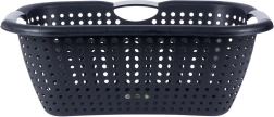 Lichte en duurzame kunststof wasmand met een inhoud van 26 l, voorzien van ergonomische handgrepen en geperforeerde wanden voor een betere luchtcirculatie. Gemaakt van 90% gerecycled materiaal en 100% recyclebaar. Ideaal voor het dragen en luchten van zowel schoon als vuil wasgoed.